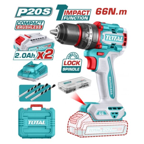 Perceuse à percussion sans fil brushless 20V - 66Nm TIDLI206681