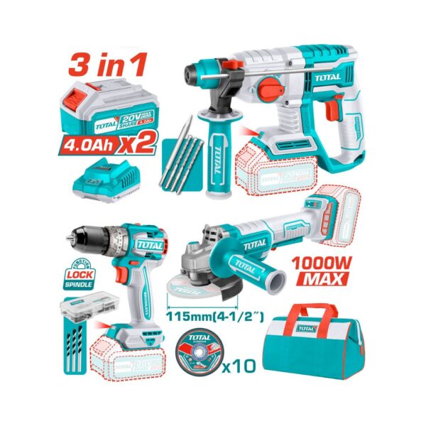 Kit Marteau Perforateur 20V, Visseuse, Mini Meuleuse 20V
