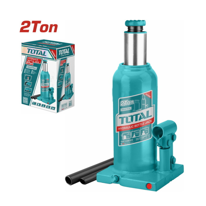 Le vérin hydraulique bouteille TOTAL 2 tonnes (THT109022) est un outil robuste et fiable pour le levage de charges lourdes, offrant une hauteur ajustable et une sécurité optimale grâce à sa valve intégrée.