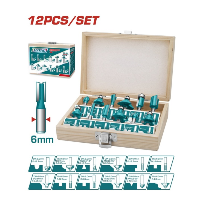 Kit de fraises de défonceuse menuiserie 12 pièces – 6 mm