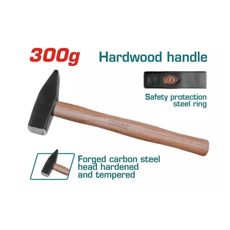Ce marteau machiniste 300g THTW71300 est spécialement conçu pour les travaux de précision en métallurgie et mécanique. Sa tête en acier au carbone 45# forgée et traitée thermiquement ainsi que son manche en bois dur garantissent résistance, durabilité et confort, répondant aux exigences des professionnels comme les ingénieurs et machinistes.