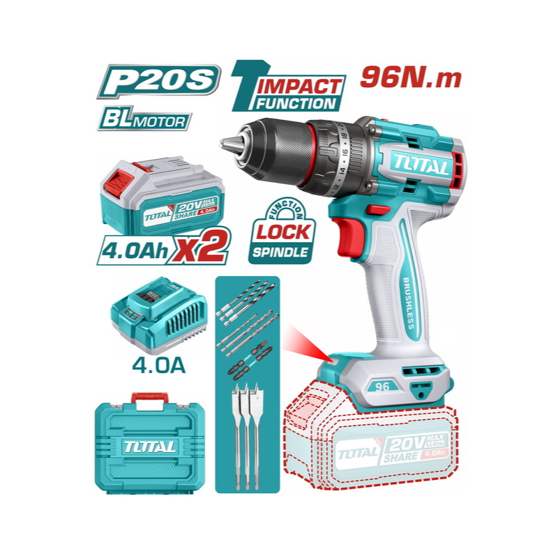Perceuse à percussion sans fil 20V Brushless – Puissance 96Nm